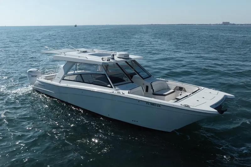 This 2024 World Cat 400 DC-X is a rare, near-new 40-foot dual console with less than 50 hours and immediate availability. Delivered in June 2025, this 2024 World Cat 400 DC-X presents in like-new condition and is fully turnkey for her next owner.
