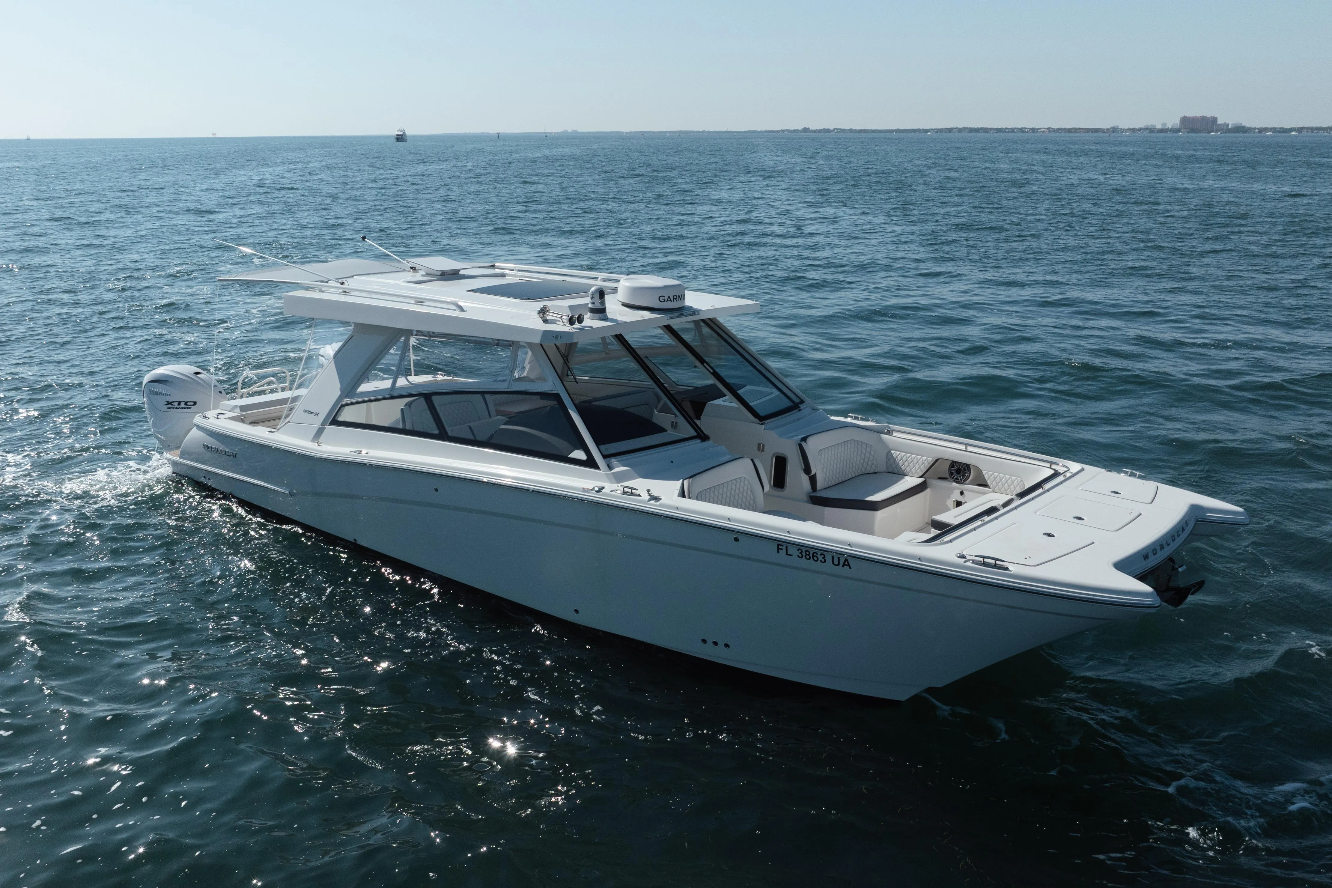 This 2024 World Cat 400 DC-X stands out with a highly desirable U-shaped cockpit dinette, a layout no longer offered on future 400 DC-X builds, making this boat especially attractive for entertaining and social cruising. The boat was ordered fully loaded with extensive factory options, leaving nothing to be desired.