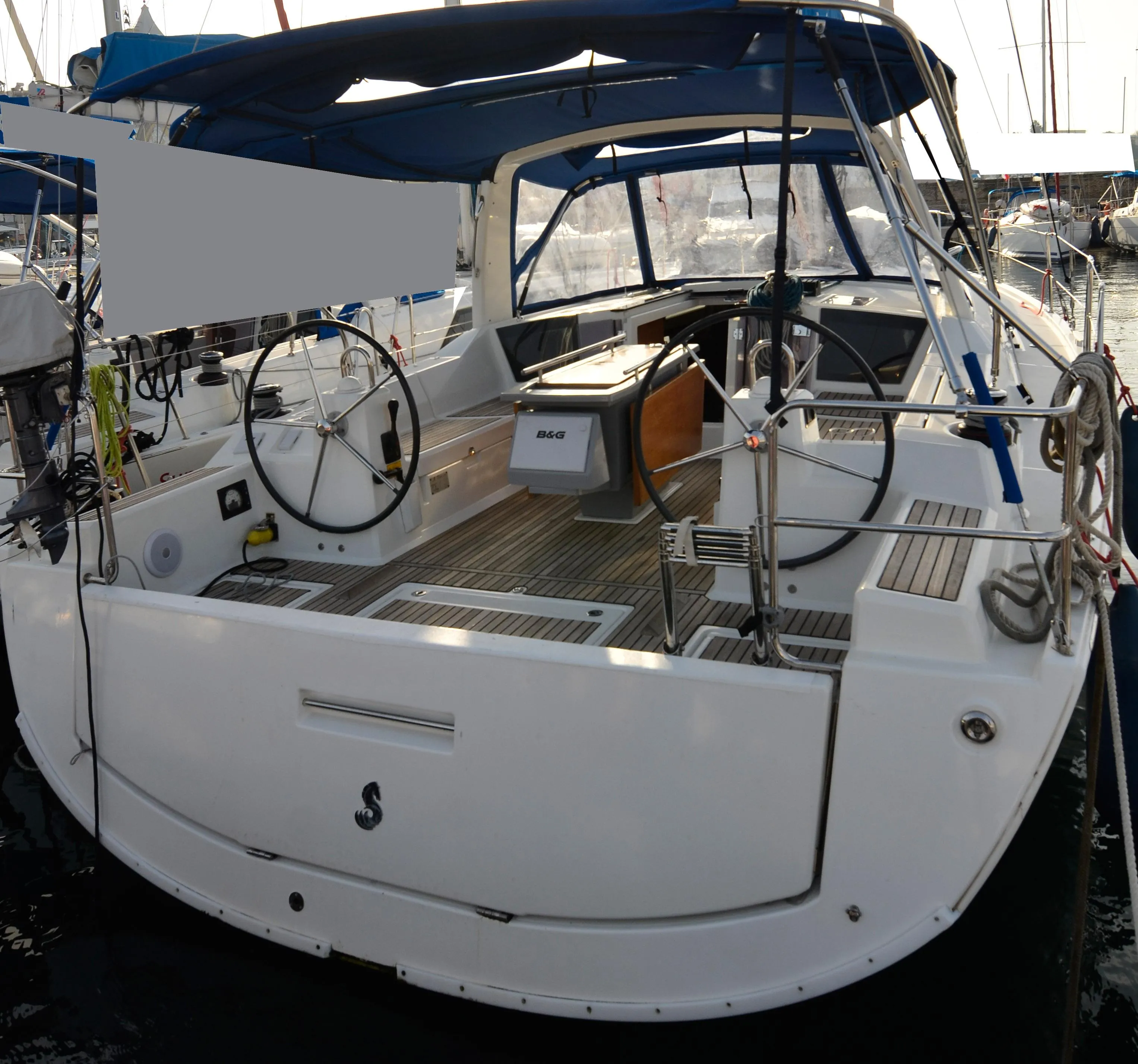 Electric windlass – Anchor with 70 m chain – Wheel – Gangway – Tender with rigid keel & two oars – Inflator – Small anchor with 15 m rope – Engine oil container – Bimini top – Sprayhood – Boathook – Fenders – Emergency anchor with 50 m rope – Winch handles – Rope (1x50m; 1x25m; 3x15m) – Bosun’s chair – Bathing ladder – Water hose – Water, petrol, outboard fuel tank – Gas bottles (Gas included) – Funnel – Bucket – Deck brush – Table – Outside shower – Work gloves – Cable 220V with battery charger – Cockpit cushion – Snorkeling fins – Cockpit speakers – Windbreaker jacket – Wind scoop