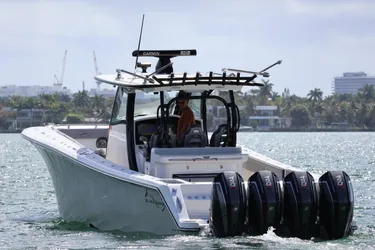 Extremely well-equipped 2020 Blackwater 41 Center Console powered by quad Mercury 450R outboards with less than 200 hours. This boat is fully loaded with premium electronics, fishing features, and comfort upgrades. Massive fuel capacity and serious offshore capability make this the perfect boat for long runs or tournament fishing.