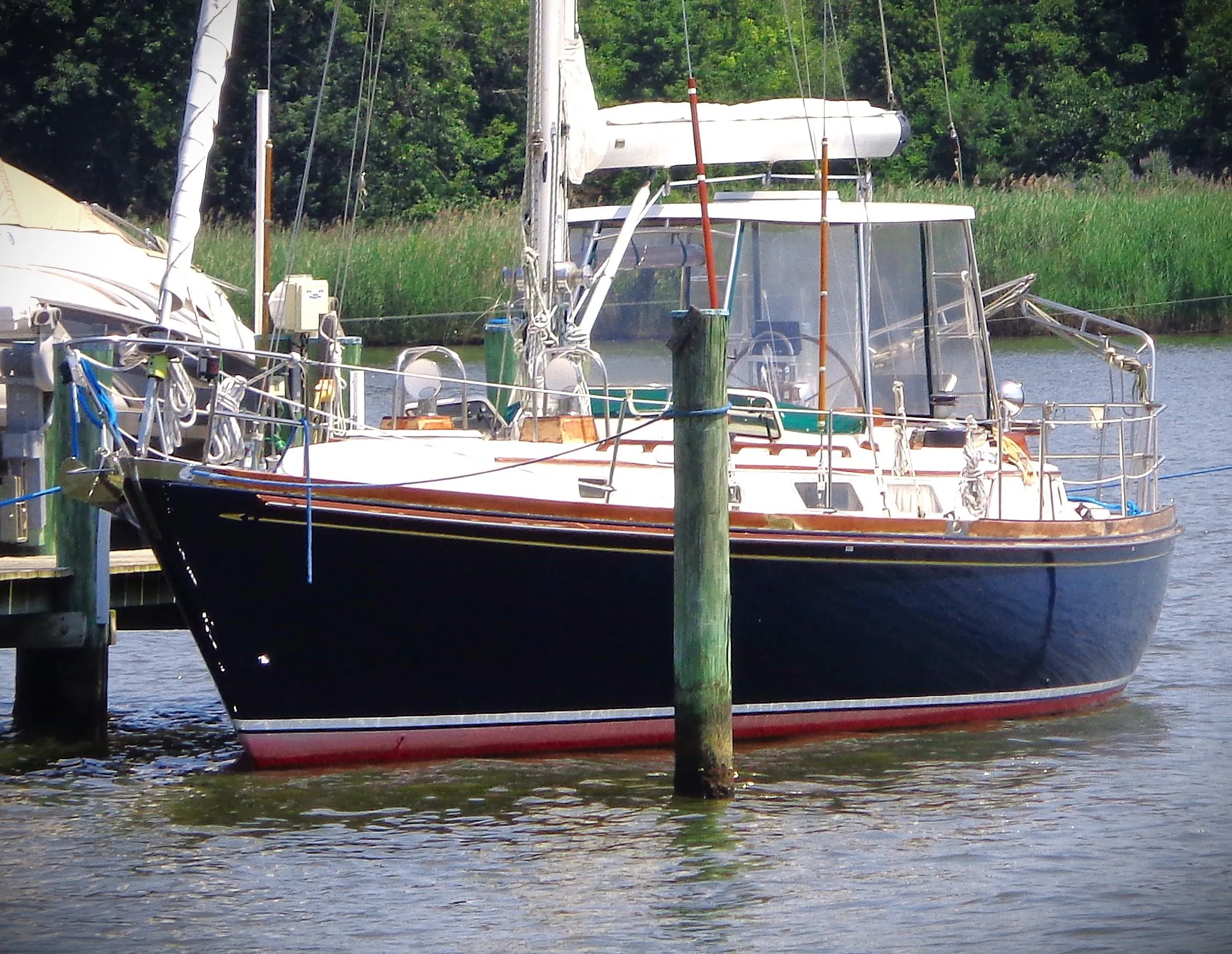 - Sunbrella covers teak brightwork (toerails, hand-rails, dorade boxes and cockpit coaming)