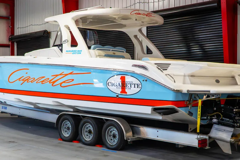 The 41’ Nighthawk center console boat delivers the iconic Cigarette Racing experience, blending cutting-edge technology with unmatched comfort and performance. Perfect for luxury day boating, the 41’ Nighthawk features high-end amenities, advanced marine engineering, and sleek design, making it the ideal choice for boaters seeking power, prestige, and style on the water.