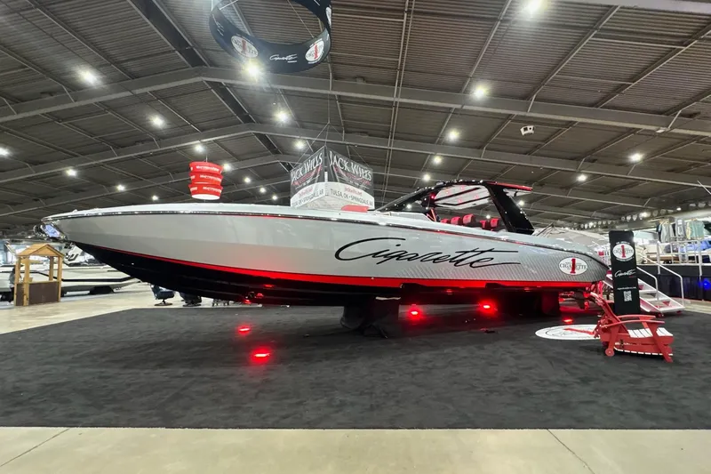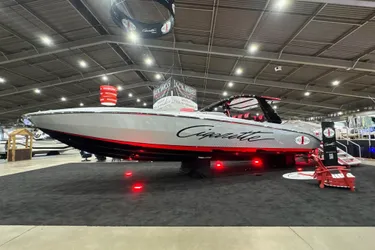 Fully equipped with the Garmin Convenience Package including GMR 24 HD radar, front and rear-facing cameras, ACR searchlight, GOST theft deterrent system, Fusion remote, and JL Audio Pure Plus sound, this Nighthawk SD delivers cutting edge technology with signature Cigarette Racing performance and luxury.