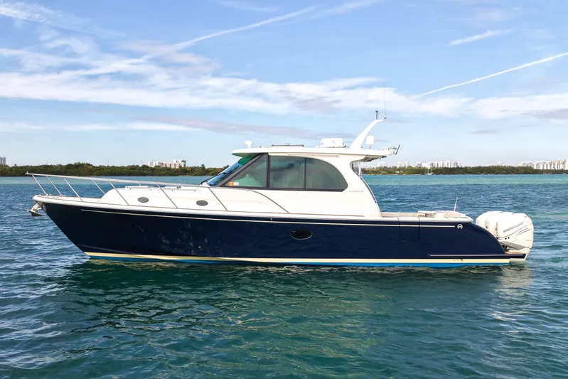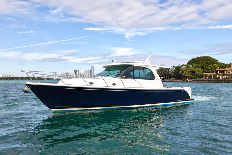 The 2021 Hinckley Sport Boat 40 X stands at the top of its class by combining yacht-level construction, exceptional ride quality, and refined luxury in a highly capable, owner-operated platform. This sport cruiser is also equipped with rod holders and a grill, allowing you to prepare and enjoy your fresh catch right on board. Built using Hinckley’s SCRIMP infused carbon and Kevlar composite construction with a Corecell foam core, the hull is lighter, stronger, quieter, and more efficient than comparable boats. Designed by the renowned C. Raymond Hunt team, the 40 X delivers a soft, confident ride with outstanding offshore stability, cruising comfortably at 35 knots with a top speed of 45 knots. An enclosed pilothouse, premium upholstery, teak finishes, island queen berth, full galley, and an oversized head with separate shower make this a true day boat that also excels for overnight use. Factory features including a Seakeeper 3 gyrostabilizer, bow thruster, joystick control, upgraded pilothouse air conditioning, Starlink internet, SureShade, and generator provide a level of comfort, technology, and ease of operation rarely found in this segment.