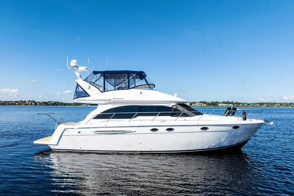 “Plane to Sea“ is a good example of a well-maintained 411 Meridian. The current owner has gone above and beyond the necessary maintenance requirements for a boat of this age. Maintenance records for the last three years of ownership are available to see on board the vessel. The boat is scheduled for a fresh coat of wax and an engine room detail to make her one of the best 2008 - 411 Meridians on the market today. Don’t miss the opportunity to own a truly well-maintained 41’ Meridian Sedan Bridge.