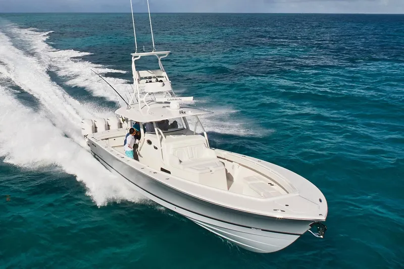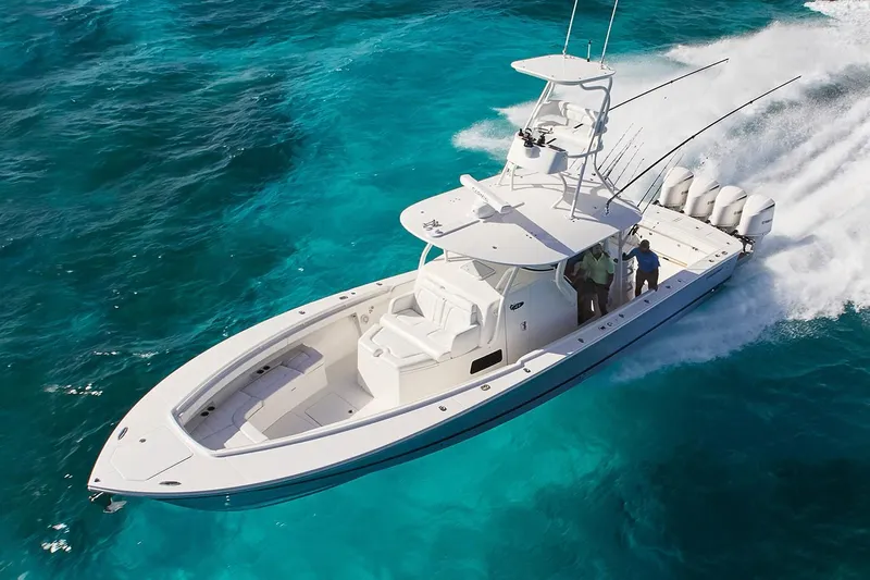 Take your offshore experience to the next level with the Regulator 41, now equipped with the Seakeeper Gyro stabilization system. It’s got more of everything you’ve come to expect with incredible deck space, huge livewell and fishbox capacity, optional Taco Grand Slam 380 outriggers with Carbon Fiber poles, and starboard boarding and dive door. The air-conditioned helm station delivers ultimate comfort, and the deluxe cabin features a convenient galley kitchen, double berth, and spacious head with shower. Powered by white-painted quad Yamaha F350s with Helm Master® and Set Point™, it’s everything you’ve ever wanted in a luxury sportfisher.