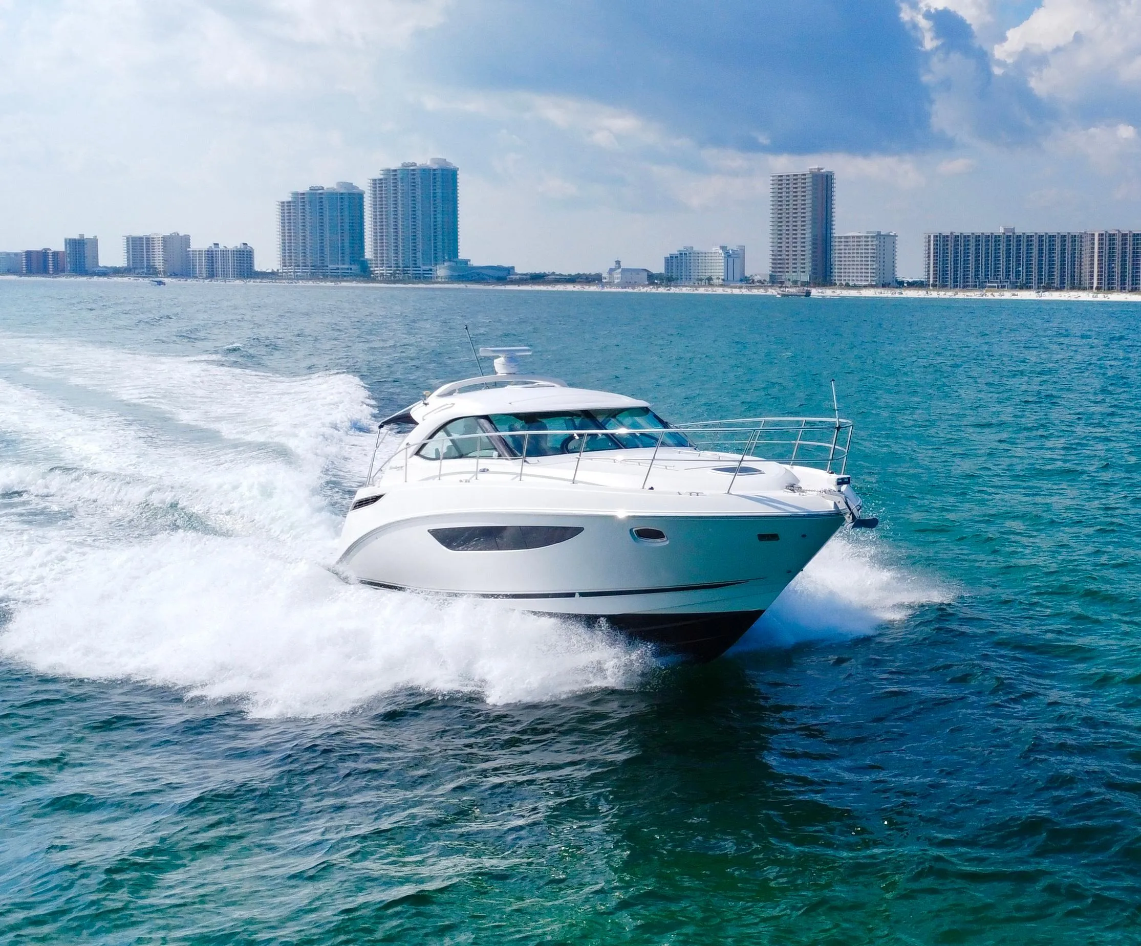 If you've been looking for a post-covid "buyer's market" deal on a diesel express cruiser, then you've found it here. "Live Bait" is a low-hour, fully-equipped and ready to cruise opportunity. She sports Cummins diesels mated to Zeus pod drives for efficient, reliable cruising- all controlled by a joystick at the helm. She sports a perfect two-couples weekender layout, with two separate heads, full galley and plenty of storage throughout. Did I mention that she has a hydraulic swim platform?