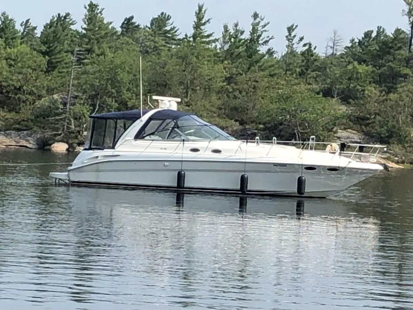 Enjoyed for the past three summers on Georgian Bay, this 2001 Sea Ray 410 Express Cruiser is the perfect blend of performance, comfort, and space. With a beam of 13’10” and an LOA of just over 45 feet, she delivers a smooth, stable ride whether you're exploring island anchorages or cruising open water. Powered by twin MerCruiser 7.4L MPI Horizons (1,168 hours) and supported by a Westerbeke generator (573 hours), she’s well-equipped for extended trips and off-grid living.