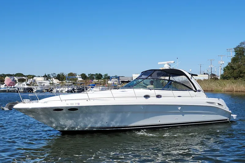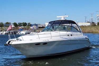 The awesome power of twin Caterpillar 3126TA 350 HP Engine V-drives makes the Sea Ray 410 Sundancer a favorite for cruising coastlines, island hopping, and just all-around meandering. She has a roomy cockpit and plenty of room belowdecks to sleep several in total comfort.