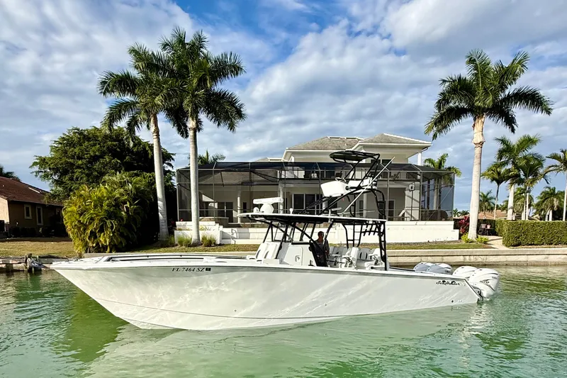 This SeaHunter 41 CTS custom catamaran has it all. Originally equipped with quad 300's, this offshore battlewagon has been repowered with quad Yamaha 425 XTO's and only has 110 hours on the motors. The seller has moved which brings this highly desirable model to the market at and extremely aggressive price. The boat is lift kept and has just been detailed . It is easy to see on Marco Island and loaded with equipment including a full Garmin suite of electronics, oversized hardtop option with upper station, plumbed interior head, dual row seating, and drum style windlass.