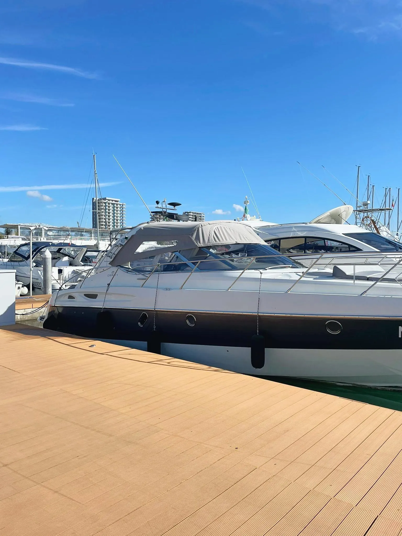La barca è stata sottoposta a un importante refitting della spiaggetta, che è stata allungata fino a 180 cm e dotata di nuova scaletta in acciaio inox con gradini in iroko massello e maniglie di risalita amovibili. È stata eseguita la verniciatura totale della plancetta e il rifacimento del legno con iroko massello e comenti neri, per un risultato estetico ed ergonomico di alto livello.