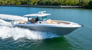 Discover the ultimate in center console yachts with our 42′ Lujo, seamlessly blending power and elegance for unparalleled offshore performance and a flawless ride, perfect for any angler, diver, or cruiser.