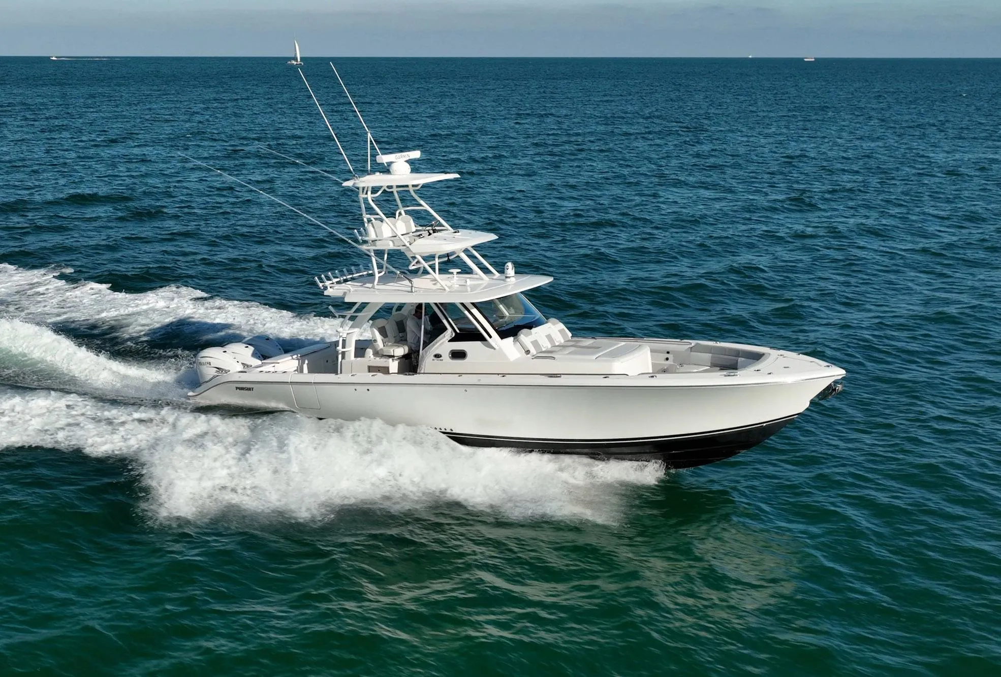 The S 408 beckons big-game fishermen and families alike with a true center console footprint and the luxury amenities of Pursuit’s Sport Series. A stout helm, rugged hardtop, large cabin space and tremendous seating choices around the cockpit mark the S 408 a leader in her category.