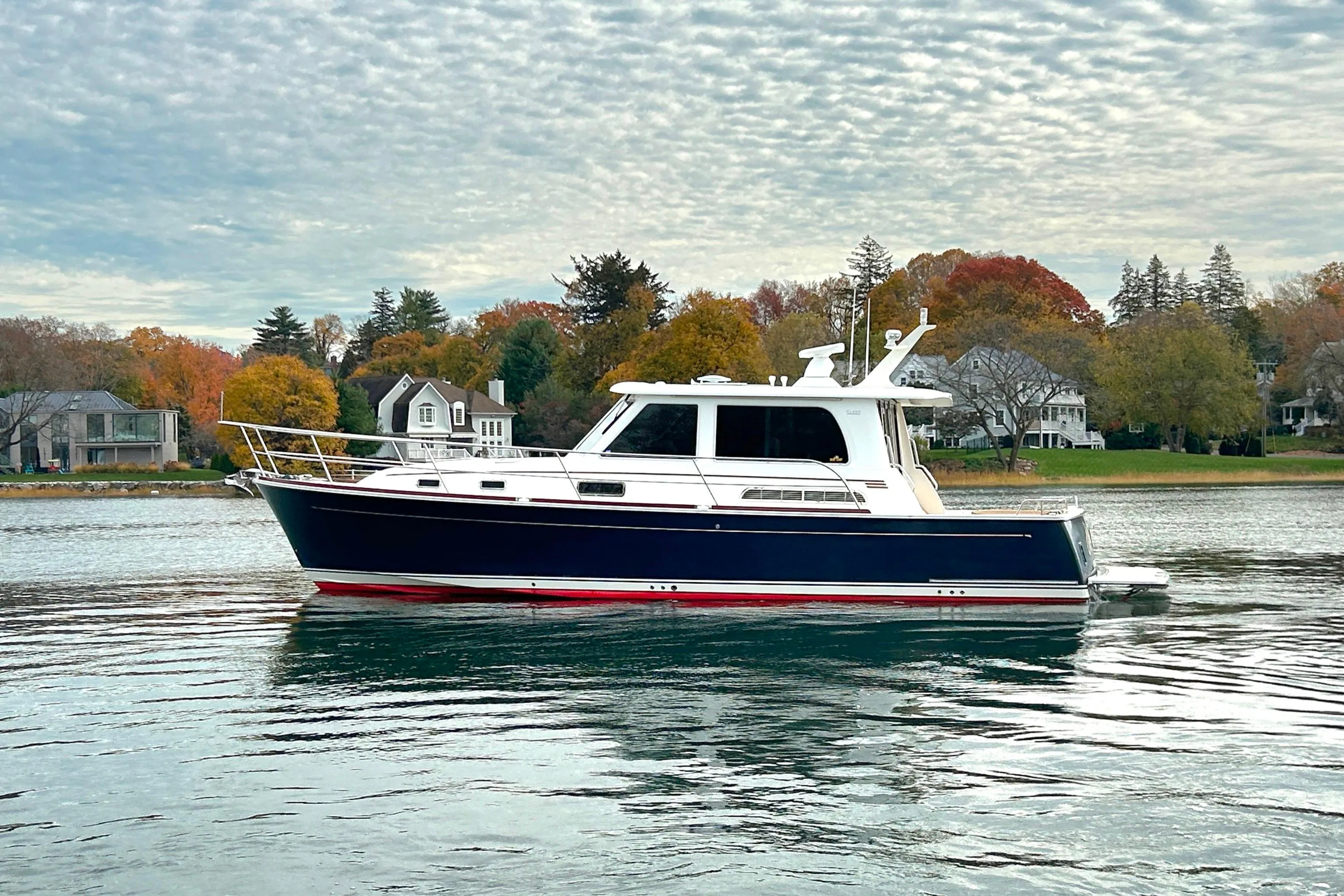 This 2017 Sabre 42 Salon Express presents an exceptional opportunity to own one of the finest downeast-style cruising yachts in her class. With the larger Cummins QSB 6.7 diesel engines paired to Zeus pod drives, Garmin 7616 multifunction displays, and a sleek navy blue hull with red bottom paint, this vessel has been well-maintained and shows with distinction. Sabre’s renowned craftsmanship, quiet running performance, and thoughtful interior layout make this an ideal boat for weekend cruising, longer voyages, or comfortable onboard entertaining.