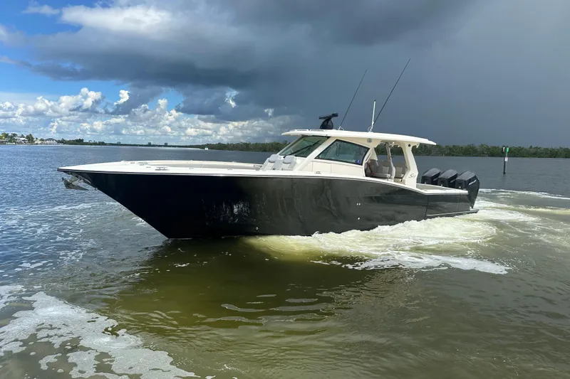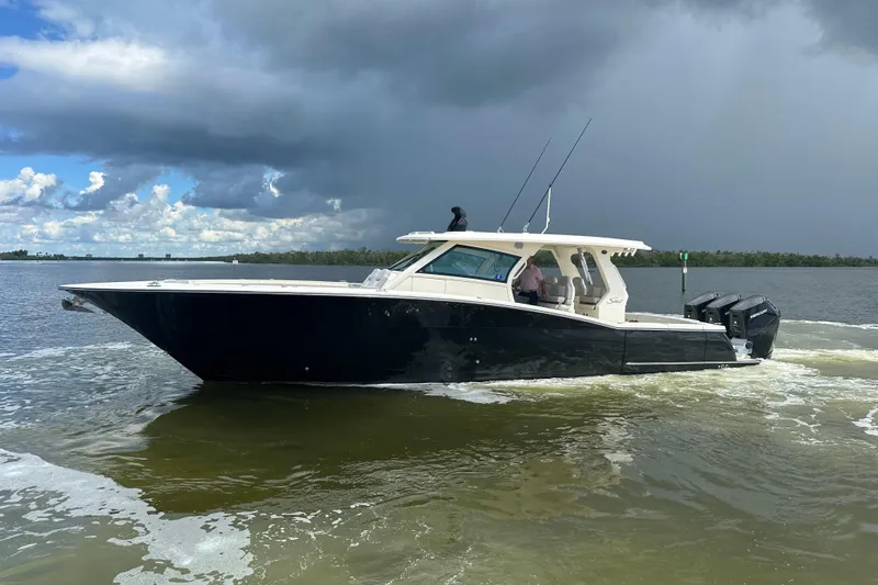 The 425 LXF offers superior structural stability, strength and a Class A finish creating unsurpassed performance. With a standard Seakeeper gyro stabilizer, second row seating, and a unique leaning post that has an electrically-actuated fiberglass drawer cooler, summer kitchen complete with grill, sink and cutting board, and swivel barstools that conveniently stow away…this model has it all.