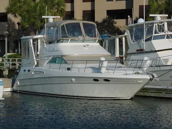 Very well maintained and shines beautifully! * Twin Low Hour 420/hp Caterpillar Diesels (795 hours) * Two Private Staterooms * Two Heads with Separate Shower Stalls * Floorplan Sleeps Seven * Complete Galley * Full Electronics Package * Full Canvas/Isinglass Exterior Enclosures * Removable Outdoor Carpeting * Foredeck Sunpads * Outdoor Wet Bar with Sink & Ice Maker * Fiberglass Hardtop-Covered Aft Deck with Acrylic Wing Doors * Generous Flying Bridge * 8 KW Generator in Sound Enclosure (1040 hours) * Triple Heat/Air Conditioning Units * Washer/Dryer * Flatscreen TV * High Gloss Cherry Wood Interior * Well Maintained Condition.....A Truly Must See!! Please see "Full Specs" and call for additional information.