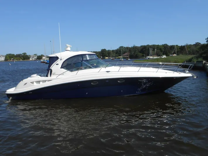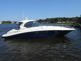 The 42 Sea Ray 420DA is state-of-the-art sport yacht with an impressive blend of European styling, and posh accommodations. Her 14-foot wide beam allows huge interior, with two private staterooms, two heads, lacquered cherry woodwork, leather sofa, and deep pile carpeting. Her massive cockpit features U-shaped lounge aft seating, 3 separated helm seats, and near perfect helm layout. The extended hardtop turns a good-looking yacht into a real crowd pleaser. The aft cockpit deck lift electrically for easy engine access. additional amenities include; marine air conditioning, and Gen Set(New August 2018), Upgraded Garmin electronics and autopilot(winter 2022).