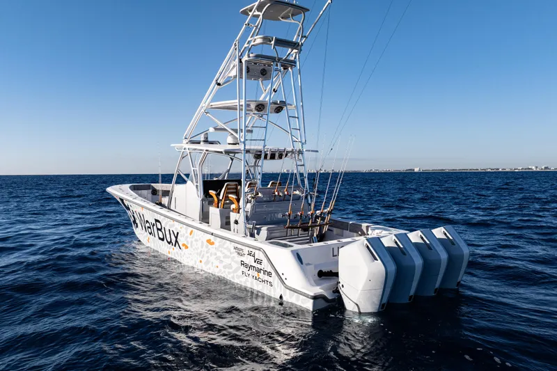 Finished in a custom Light Gray hull with a full wrap preparation and custom painted tower components, this 420Z is equipped with a double-row Tuna Gap Tower, Seakeeper 4.5 stabilization, and an advanced bait system configuration that makes it one of the most capable sportfishing center consoles in its class.