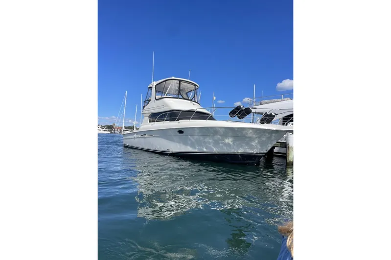 The Silverton 42 Convertible offers incredible accommodations with luxurious appointments. A wide hardtop-crowned flybridge provides plentiful seating and storage. The command helm provides good visibility and the controls are at the captain's fingertips. The unique molded steps are great for accessing the bridge - no more ladders to bump those knees. The cockpit is tournament ready, and with the addition of the optional Fish-Pac, owners can outfit the 42 to the gunnels. The split head and shower arrangement make cleaning up easy.