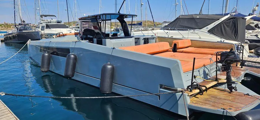 Introducing the 2019 Sunreef 40 Open, a remarkable power catamaran that combines elegance with performance. With an overall length of 12.75 meters, this vessel is crafted from durable fiberglass, ensuring both strength and stability on the water. Equipped with twin Volvo Penta D6 435D F engines, each delivering an impressive 435 horsepower, it offers exhilarating cruising speeds of up to 35 knots and a maximum hull speed of 60 knots, making it perfect for adventurous outings. The accommodation features one cozy cabin and two heads, providing ample comfort for you and your guests. This catamaran is designed for those who appreciate quality and performance, making it an ideal choice for both leisure cruising and exciting voyages. Experience the perfect blend of luxury and functionality with the Sunreef 40 Open, where every journey becomes a memorable adventure.