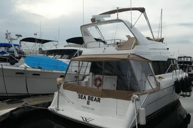 Introducing this well maintained 1994 Bayliner 4388 Motor Yacht, a stunning vessel that combines elegance and performance. This motor yacht boasts a robust fiberglass hull, ensuring durability and stability on the water. Powered by Twin Diesels with a spotless engine room, Westerbeke 8KW Generator, Side Power Bow Thruster, and exceptionally clean interior & exterior. She features two well-appointed cabins and two heads, providing ample space for relaxation and comfort. The interior has been updated and the roomy open Salon has 360 degree views equipped with a lower helm station and comfortable large Dinette & Galley to Port for entertaining quests or dining. There is also a aft window that opens up to the Aft Hardtop Deck with newly added Custom Aft Enclosure to the extended swim platform with walk trough transom door for easy boarding or docking.