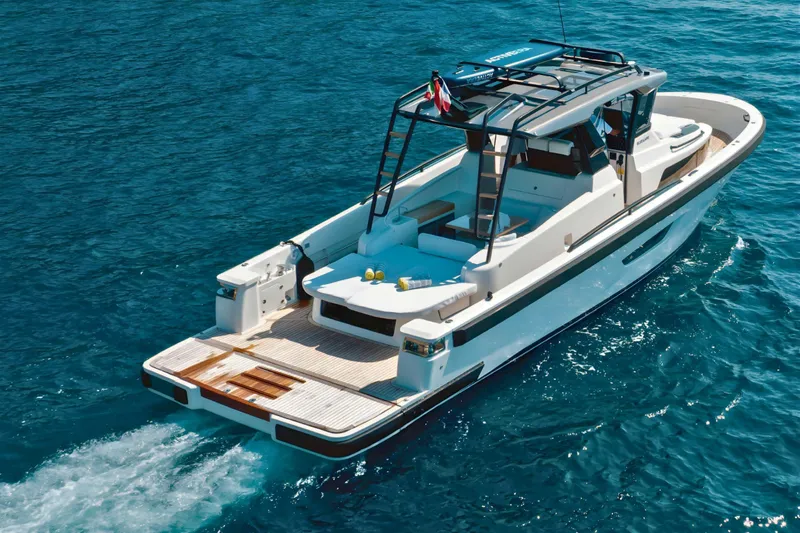 The BG42 is the ultimate pocket-rocket walkaround, built to impress and perform. Powered by twin Volvo Penta D6-IPS600 440HP engines, she cruises effortlessly at 27 knots, with a top speed of 34 knots.