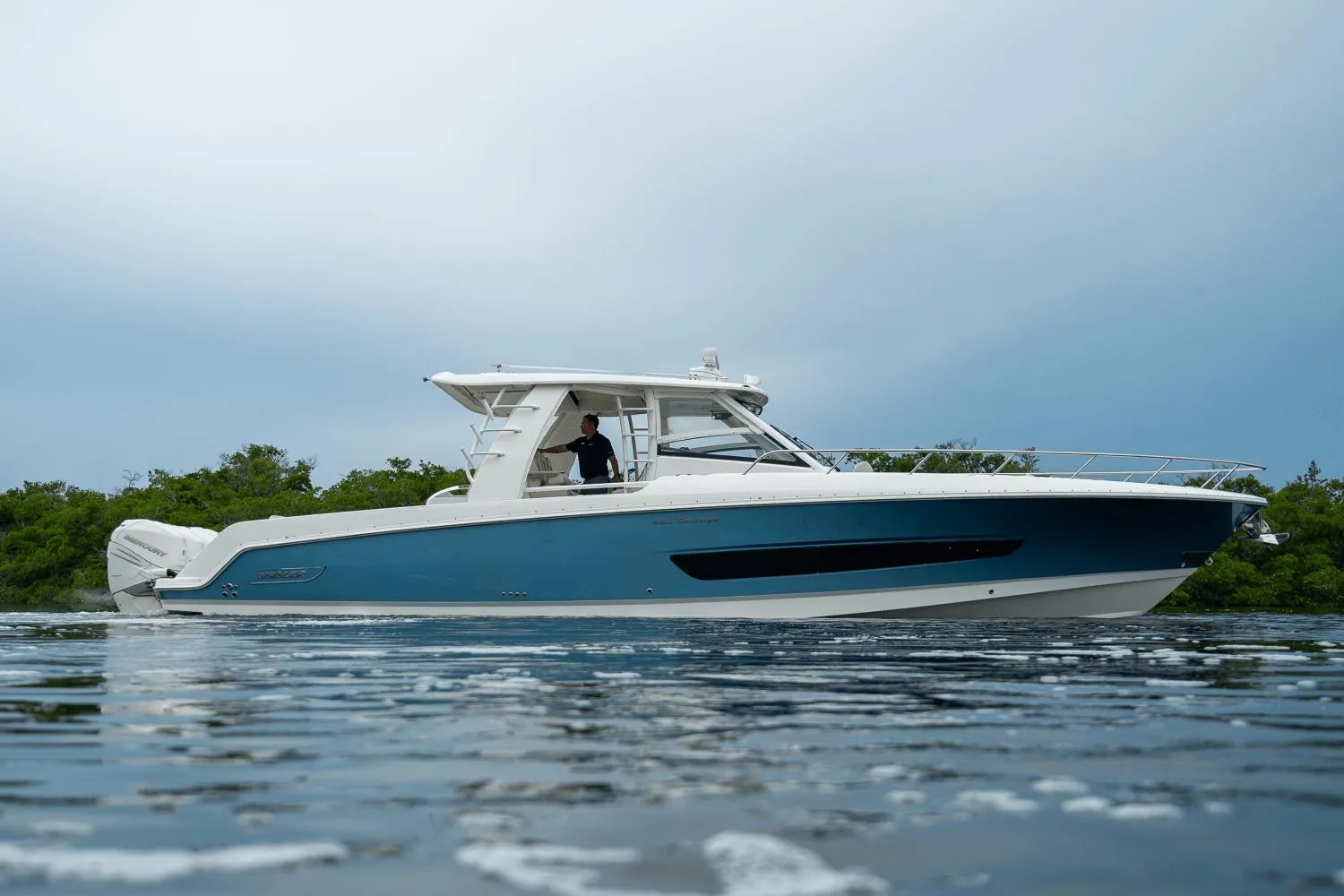Introducing the powerful and luxurious 2017 Boston Whaler 420 OUTRAGE. This impressive boat is designed to provide an unparalleled boating experience, whether you're fishing, cruising, or simply enjoying a day on the water. The 420 OUTRAGE is built to withstand even the toughest offshore conditions, with its seaworthy hull and high-performance capabilities. Equipped with quad Mercury Verado 350 hp engines, this boat packs a punch, delivering outstanding speed and remarkable fuel efficiency. The spacious and comfortable cockpit provides plenty of seating and is ideal for entertaining, equipped with a wet bar, grill, and refrigerator. The fishing enthusiasts will surely appreciate the 420 OUTRAGE's extensive array of fishing features, including a bait prep station, tackle storage, fish boxes with pump-out, and a deluxe leaning post with integrated rod holders. Plus, the boat comes with an optional joystick and Skyhook technology, providing unparalleled control and maneuverability. Luxury, functionality, and performance come together seamlessly in the 2017 Boston Whaler 420 OUTRAGE, making it the perfect boat for those seeking the ultimate boating experience. All engines were recently serviced my MarineMax. Call Aaron Bang to schedule an appointment to view this boat in person.