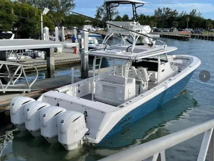 This one-owner boat has been professionally maintained since it was new. This 435cc Everglades has a luxurious cabin, plush seating, custom etched-glass partition, and a fully equipped head with a standing shower. You'll have all the amenities of home with the functionality you've come to expect from Everglades boats. Its design will pull you in - but the fishability will keep you returning for more. With a full bait-prep workstation including 10 tackle drawers, tons of gunwale storage, and more than 300 gallons of fish boxes, freezers, and lighted livewell space, you have room for even your most successful day on the water. NO BOTTOM PAINT.