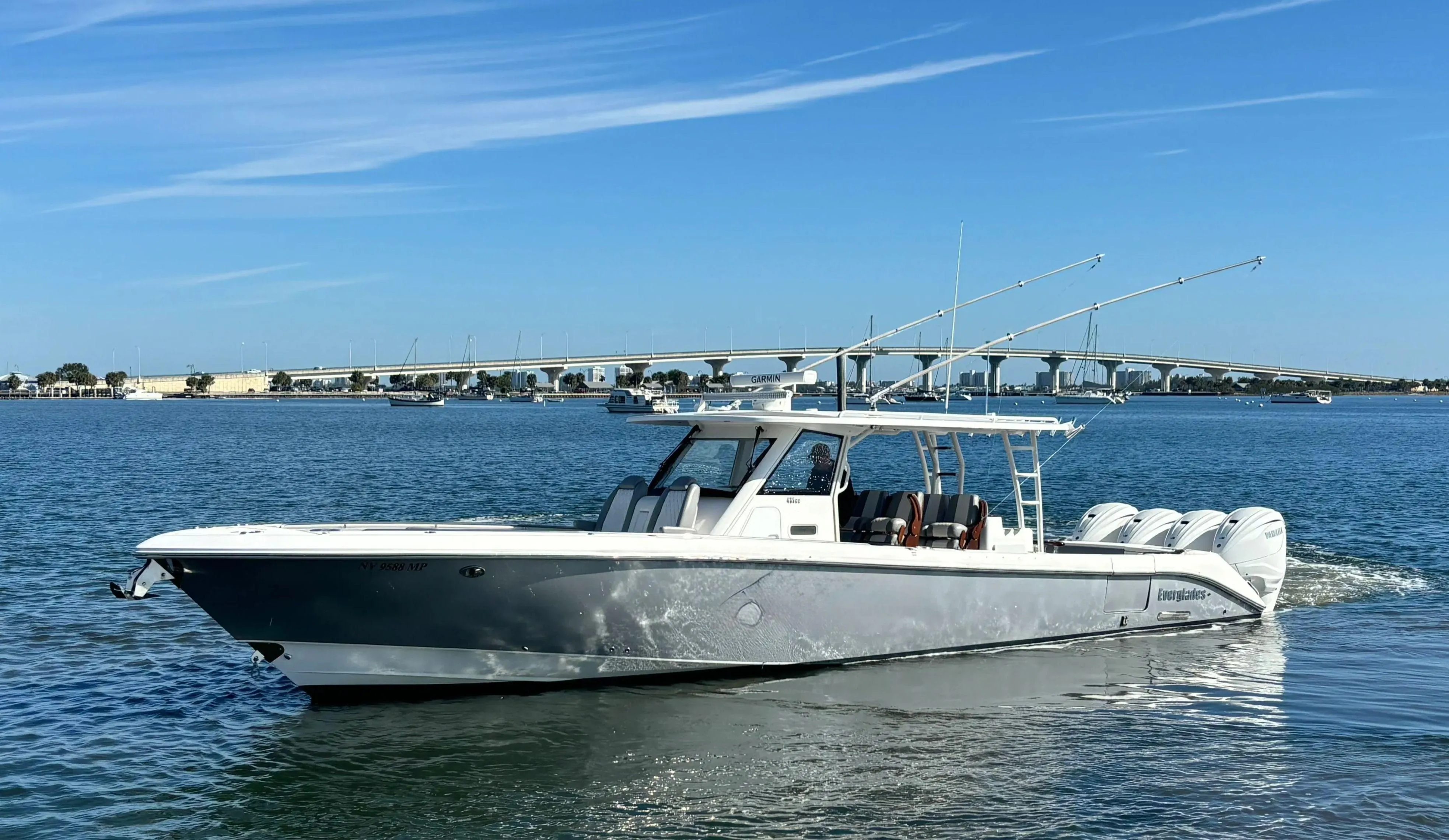 ** NEW TRADE ** SALES CONTACT - CHRIS FRAMBES 772.528.0840 | 2021 EVERGLADES 435 CC | QUAD YAMAHA 425 XTO (FULLY SERVICED, MARCH 2025) | (935) CURRENT HOURS | YAMAHA HELM MASTER JOYSTICK CONTROLS | AWLGRIP PAINT | FLINT GRAY INTERIOR | TRIPLE GARMIN 8616XSV SCREENS | B175 HIGH & LOW TRANSDUCERS | GARMIN FANTOM 54 RADAR | GARMIN AUTO PILOT | GARMIN 315 VHF | AIS 800 TRANSCEIVER | SIRUS SATELLITE WEATHER RECEIVER | RELEASE MARINE TEAK LADDER BACK HELM SEATS & SECOND ROW SEATING | TEAK ACCENT - CUP HOLDERS, DASH, ARMRESTS | JL SPEAKERS LED M6 UPGRADE | JL AUDIO AMPLIFIERS | FUSION STEREO | RIGID 54" LIGHTBAR | CONSOLE, FORWARD CONSOLE, SEAT COVERS | RELEASE MARINE COCKPIT ROCKET LAUNCHER | TEAK FORWARD TABLE | GEMLUX 22' CARBON FIBER OUTRIGGERS | CARBON FIBER STEERING WHEEL | CABIN AC | HOT WATER HEATER | SEAKEEPER 6 STABILIZER (SERVICED MARCH, 2025) | NEW FISHER-PANDA DIESEL GENERATOR (MARCH, 2025) | NEW SEADEK (MARCH, 2025) | BOTTOM PAINTED