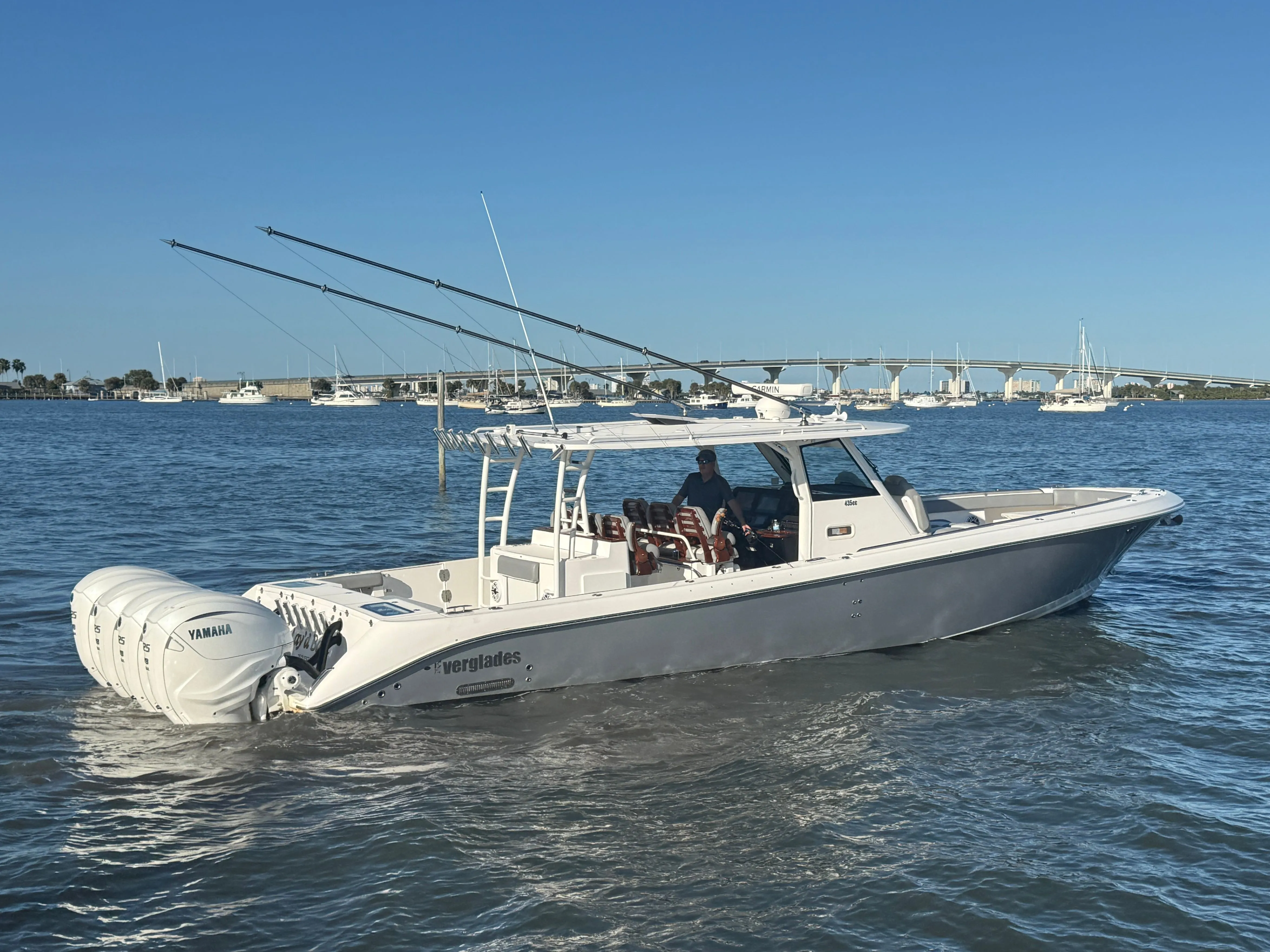 ** NEW TO THE MARKET ** 2021 EVERGLADES 435 CC | QUAD YAMAHA 425 XTO | (960) CURRENT HOURS | FULL (1000) HOUR SERVICE COMPLETED JULY, 2025 | YAMAHA EXTENDED WARRANTIES EXPIRE JULY, 2027 | YAMAHA HELMASTER JOYSTICK CONTROLS | AWLGRIP BRIGHT ALUMINUM METALLIC PAINT | FLINT GRAY INTERIOR | TEAK TRIM PACKAGE | DUAL ROW RELEASE MARINE TEAK LADDER BACK SEATS | TRIPLE GARMIN 8616XSV SCREENS | GARMIN GT51M-TH CHIRP TRANSDUCERS | GARMIN 4' OPEN ARRAY FANTOM 54 RADAR | GARMIN AUTO PILOT | GARMIN VHF 315 | GARMIN AIS TRANSDUCER | NEW FUSION STEREO UNIT (JULY, 2025) | NEW KOHLER 5KW GENERATOR (JULY, 2025) | GENERATOR WARRANTY EXPIRES JULY, 2030 | SEAKEEPER 6 STABILIZER (SERVICED JULY, 2025) | NEW SEADEK (JULY, 2025) | NEW STARLINK RECEIVER (JULY, 2025) | NEW BOLSTER CUSHIONS (JULY, 2025) | TEAK RETRACTABLE BOW TABLE | GEMLUX 22' RETRACTABLE OUTRIGGERS | BOAT IS BOTTOM PAINTED | SALES CONTACT - CHRIS FRAMBES 772.528.0840