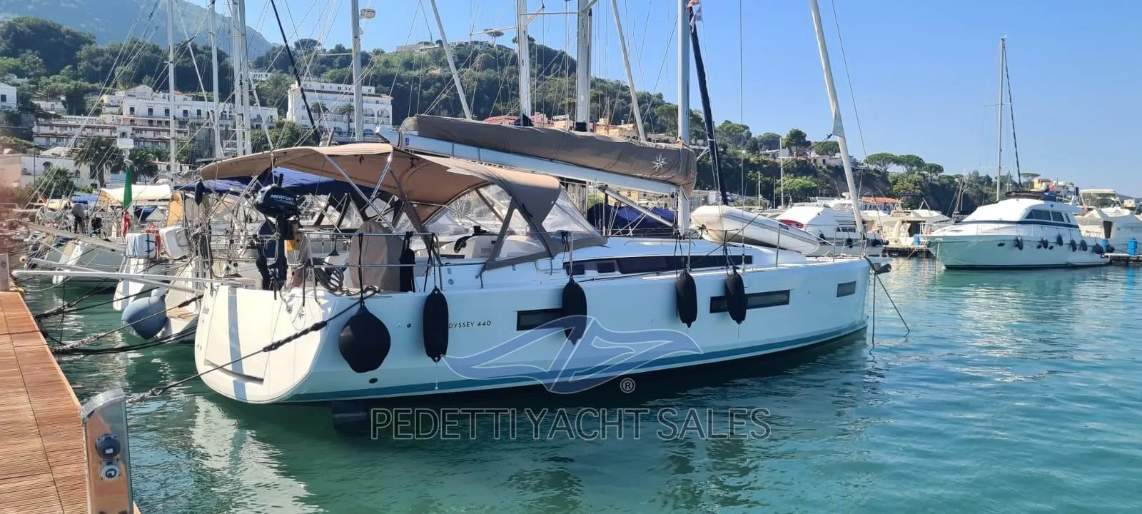 elica di prua a scomparsa, passerella in carbonio, GPS, strumenti vento, ECO, VHF, pilota automatico, LOG, 1 winch elettrico, cuscineria completa, piattaforma di poppa ribaltabile, randa semisteccata, pozzetto in teak, sprayhood, lazy bag, lazy jack, genoa avvolgibile, vang rigido, verricello elettrico, bimini