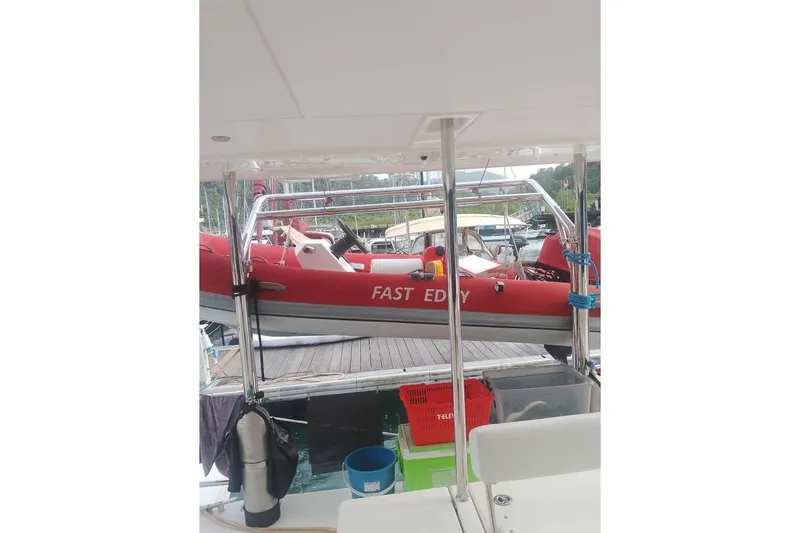 One of its standout features is the innovative flybridge, which offers panoramic views, ample seating, and a helm station, creating a perfect space for socializing or enjoying open-air navigation. The wide beam ensures stability and provides generous living areas, including a bright saloon with large windows, a fully equipped galley, and multiple cabins with ensuite heads for privacy and convenience.