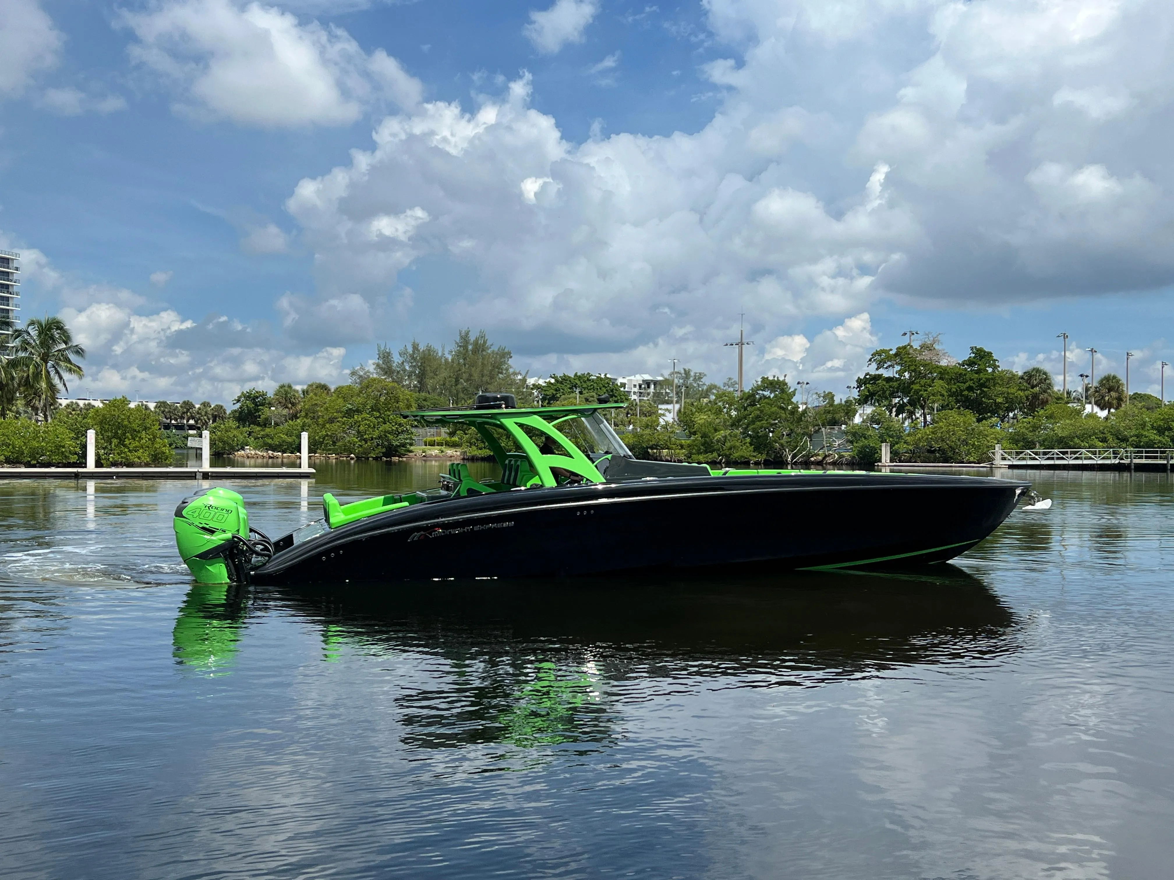 This 2020 Midnight Express 43’ Open is powered with Five Mercury Racing 400R motors with 270 and has extended warranty until mid 2024. It is equipped with Garmin 22" electronics, and an incredible JL Sound system. Located in Fort Lauderdale, Florida. Call today to schedule a showing on the 2020 Midnight Express 43’ Open.