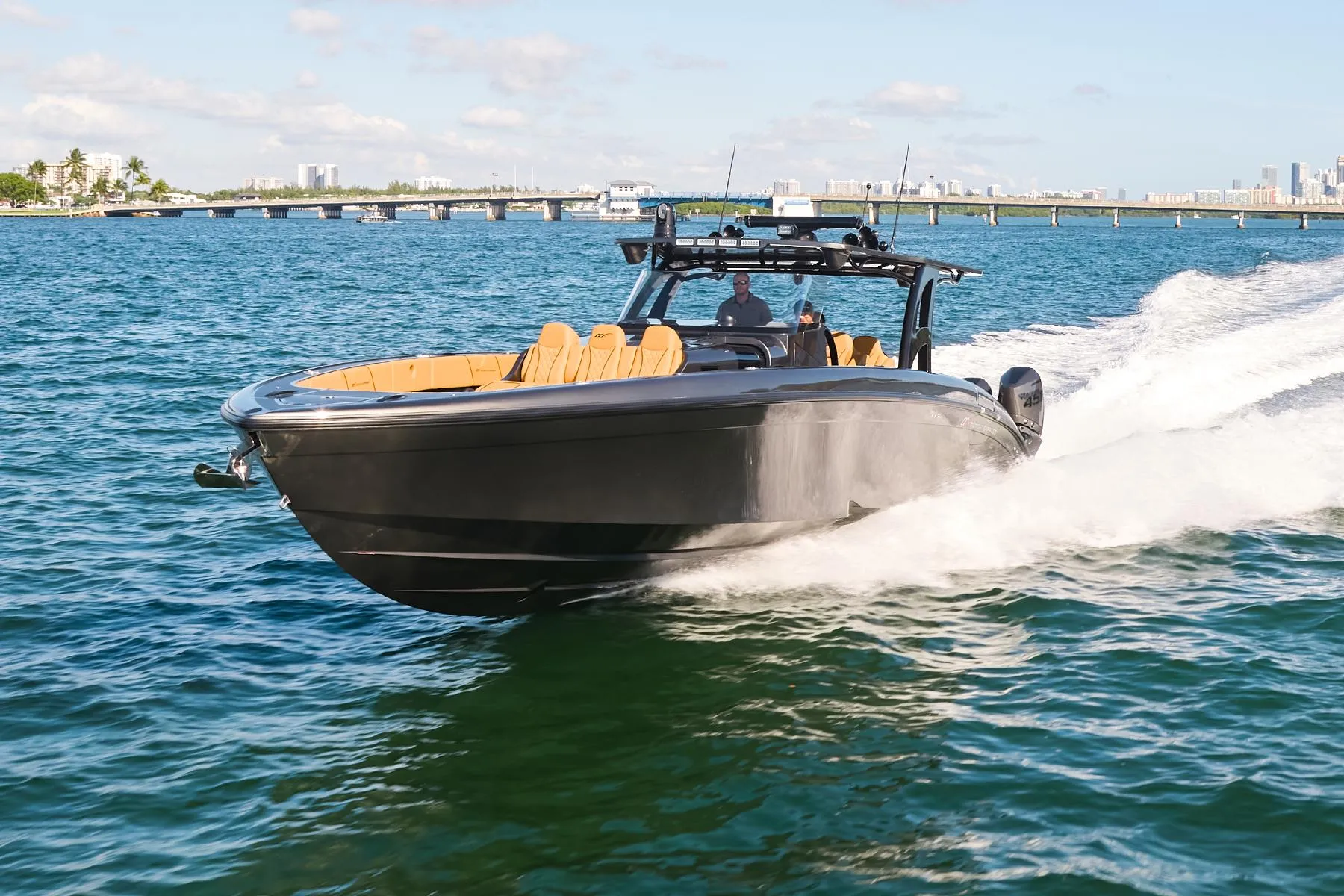 Step aboard the breathtaking 2023 Midnight Express 43' Solstice. This stunning vessel, with its unique full carbon fiber hull, adorned in an exquisite metallic grey paint and camel seating, is designed to leave an unforgettable impression.