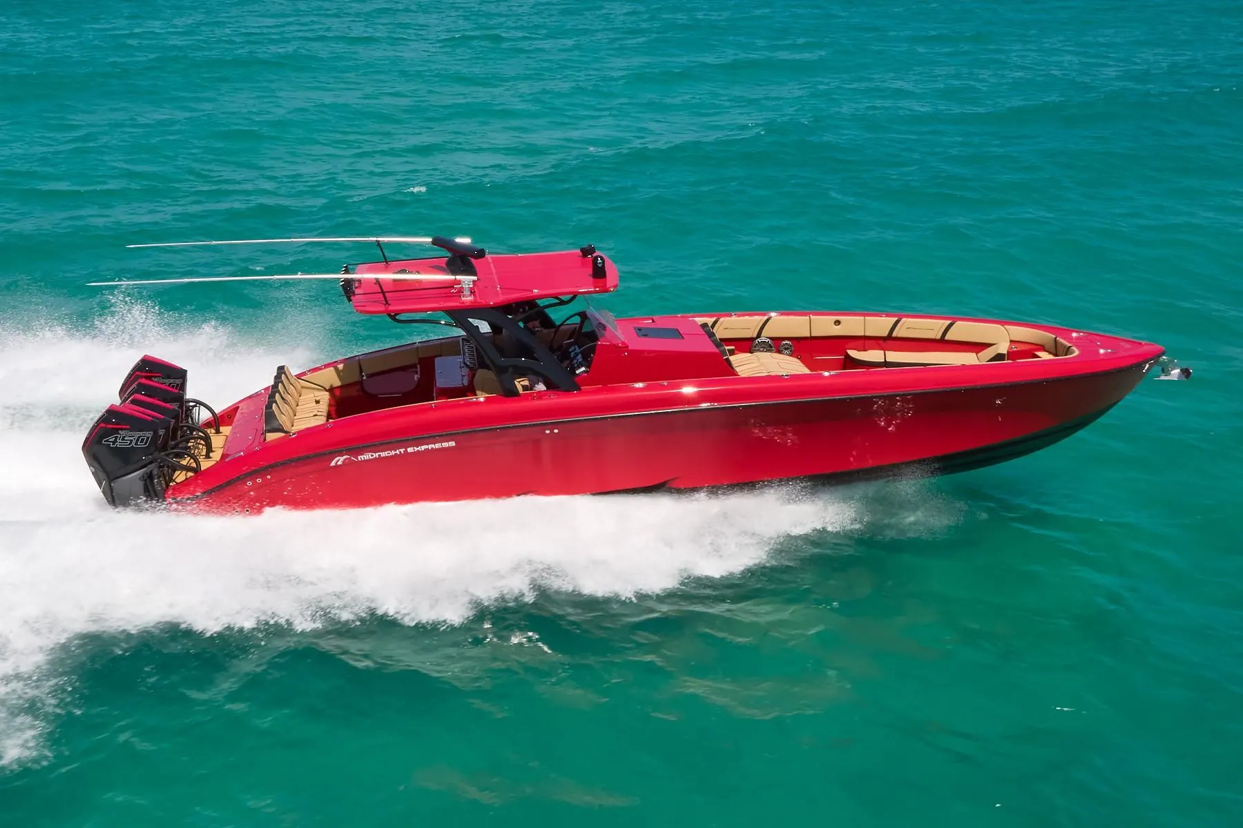 The Midnight Express 43' Open has quickly become its own legend. Class leading 12'6" beam combined with our twin-step hull, weight saving construction technologies and high-tech materials, the 43' Open is a game changer. This exceptionally dry boat is easy enough to operate for 1 person or bring along 20 of your closest friends, the world's waters becomes your playground. We have the ability to customize your 43' Open with a range of performance and luxury options.