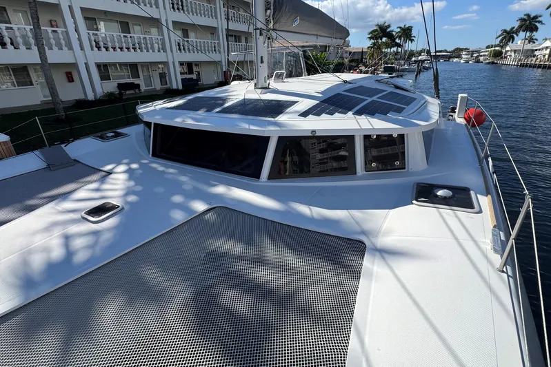 Features: climate control, 1700Ah batteries (1200Ah Li/500Ah AGM), 2KW solar, 5KW generator, water maker + galley 6 stage water filtration, security system, Starlink WiFi, full enclosure (helm, aft deck), Highfield 310 tender w/6hp Honda.
