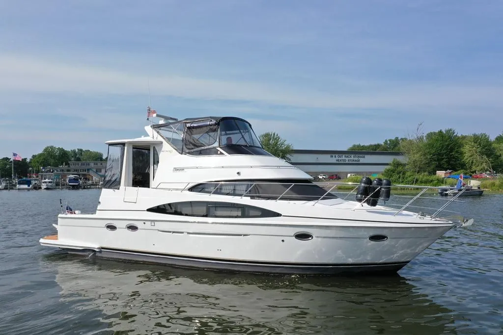 New to the Market this 2003 Carver 444 Cockpit Motor Yacht, a remarkable cruiser that combines elegance and performance. With an overall length of 44 feet, this vessel is crafted from durable fiberglass and features a modified Vee hull shape, ensuring stability and smooth navigation on the water. Powered by twin Volvo TAMD 63P inboard engines, each delivering an impressive 370 horsepower, this yacht offers a cruising speed of 18 mph and a maximum hull speed of 23 mph, making it perfect for both leisurely outings and spirited adventures. Accommodations include two well-appointed cabins and two heads, providing ample space for relaxation and comfort. The yacht is equipped with an electric windlass, enhancing its functionality and ease of use. Experience the perfect blend of luxury and performance with the Carver 444, designed for unforgettable moments on the water.