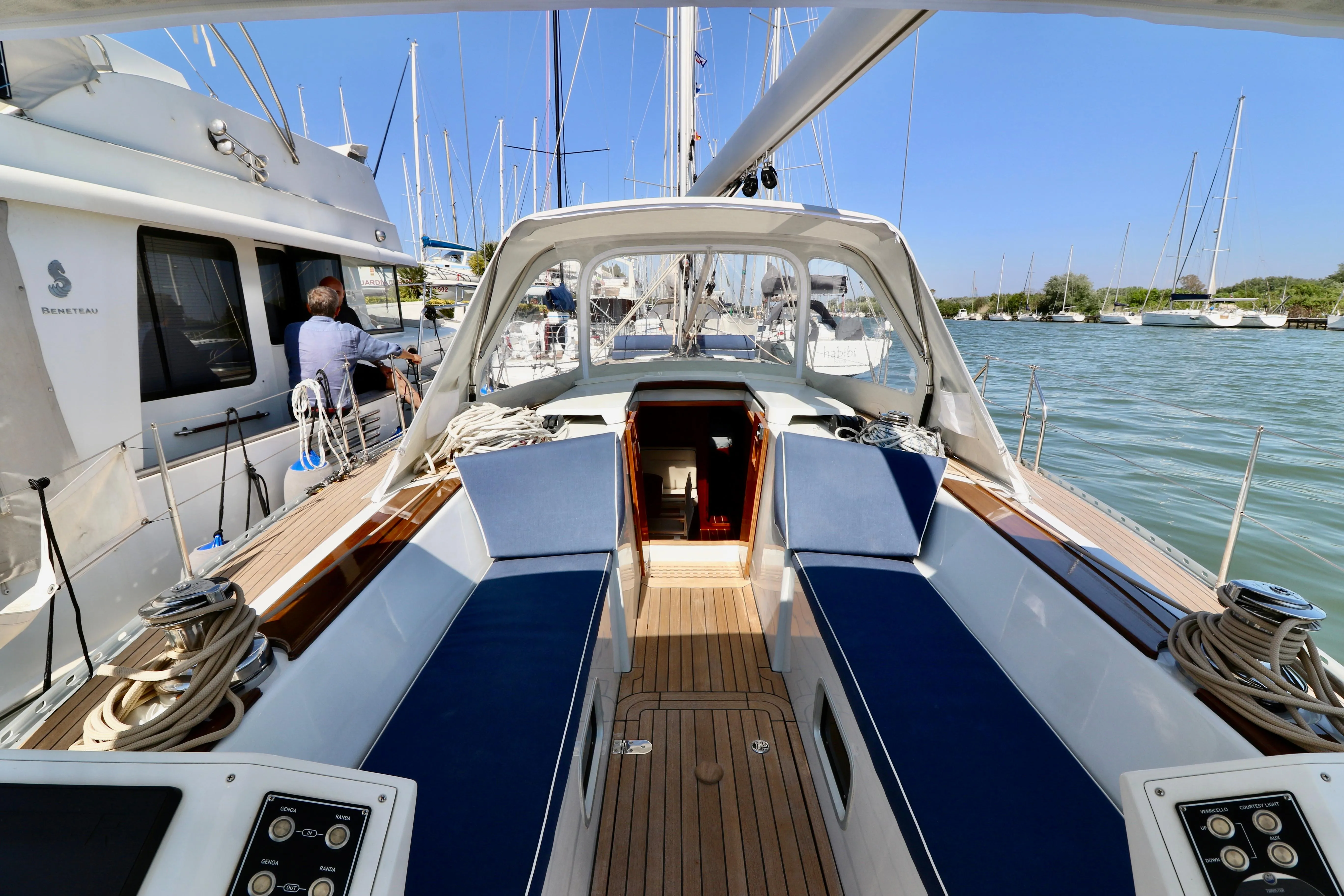 Su questo NM45 Classic tutto è comodo, spazioso e fruibile. La coperta è stata ridisegnata per attualizzarla e modernizzarla: nuovi e più ampi punti luce, un tavolo a scomparsa in pozzetto, la poppa aperta, un ampio prendisole a prua, un nuovo prendisole a poppa, immediatamente dietro la timoneria.