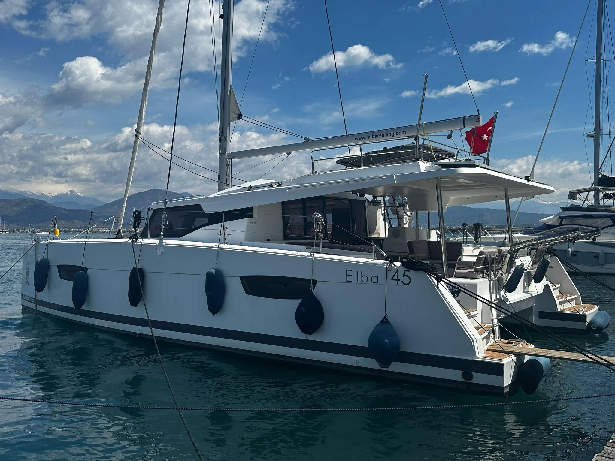 This 2022 Fountaine Pajot Elba 45 is the highly sought-after Oceanic Version, featuring the Quatuor layout with 4 double cabins, each with a private head. Currently in charter operation in Fethiye, Turkey, she is professionally maintained and fully equipped for comfortable cruising and guest satisfaction.