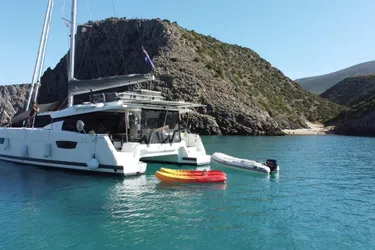 Commissioned as a 3-cabin, 3-head Owner’s Version with the Comfort Package and over €250,000 in factory upgrades, TIME TO CHILL delivers elevated comfort and capability in every detail. The Maestro layout dedicates the entire port hull to a refined owner’s suite with private head and walk-in shower, while the starboard hull offers two spacious guest cabins, each with ensuite facilities. Her luminous saloon, well-equipped galley, and expansive cockpit flow seamlessly for effortless indoor–outdoor living.