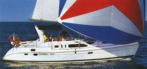 The Hunter Passage 450 was designed, engineered, and built to provide comfort and livability. The spacious salon is both well ventilated and well lit with its many ports, hatches, and the innovative Hunter windshield. Moving aft from the salon, the mid-cabin head is positioned to enhance access from the salon and cockpit areas. Corian counters, plentiful storage, and an easy-to-clean finish makes the head practical and good looking. The owner's suite offers superb accommodations in an expansive area. A real queen-size, innerspring mattress adorns the master berth while a huge amount of hanging lockers and shelving provide storage. The combination shower and bathtub lie behind the custom shower door. There is also a desk - computer station. Forward is the guest stateroom with a full-size double berth and a full set of drawers and hanging lockers, plus a private head with shower. The fully equipped galley suits extended cruising or living aboard. Wide Corian fiddled counters provide plenty of prep space area. There is also a dual opening refrigerator, twin stainless sinks, a convenient cutting board, gimbaled range and oven, and a microwave. Secure storage and non-slip flooring make cooking in a seaway safe and easy.