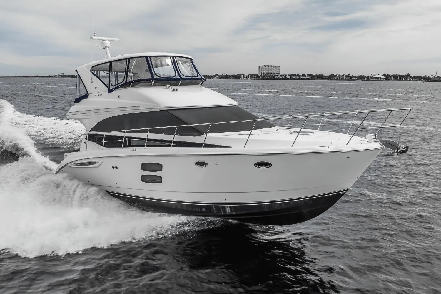 The 2013 Meridian 441 SEDAN is the epitome of luxury and elegance on the water. This stunning yacht is perfect for the discerning boat enthusiast who values both comfort and performance. With a length of 47 feet and a beam of 14 feet and 3 inches, the Meridian 441 offers plenty of space for entertaining guests or enjoying a peaceful day on the open water. The interior of the Meridian 441 is nothing short of impressive. Featuring an open and spacious salon, a fully equipped galley with modern appliances, and comfortable sleeping accommodations for up to six guests, this yacht is perfect for extended trips or weekend getaways. Outside, the 441 Sedan boasts a spacious air conditioned flybridge with seating and a helm station for optimal navigation. The aft cockpit provides an ideal space for entertaining, with a wet bar and ample seating. The integrated swim platform makes water activities a breeze. With twin 480 horsepower Cummins engines, the Meridian 441 Sedan delivers impressive performance and a smooth ride. This yacht is truly a masterpiece in both design and functionality, making it the perfect choice for those who demand the best on the water. Local slip available for lease. Call Aaron Bang to schedule an appointment to view this vessel in person. ***TRANSFERRABLE EXTENDED WARRANTY GOOD THROUGH*** 1/8/2026