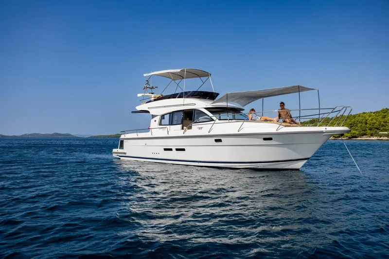 The Nimbus 405 Flybridge brings together spacious Scandinavian luxury and robust offshore capability, making it the ultimate family cruiser. Powered by twin Volvo Penta D6-380 shaft drive engines (760hp combined), this boat offers smooth, reliable performance with the benefit of shaft propulsion. With a generous flybridge, refined mahogany interior, and smart features throughout, the 405 Flybridge is designed for effortless extended cruising and stylish entertaining - both at sea and at anchor. Complete with prepare and antifoul, Navionics chart and 3 piece name set. This 2026 model Nimbus 405 Flybridge is on order with the factory but changes can still be made to the specification - call us to find out about our offers. Note - library photos may not reflect specification of boat.