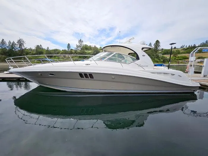 Here's a well maintained Sea Ray 44 Sundancer with all of the best features on board! Twin Cummins power package offers efficiency and performance; DECK spaces are built for fun on the water with family and friends, including wetbar with fridge and expansive lounge seating areas including bow sunpads. Inside the spaces are impressively finished in gloss cherry & Ultraleather, with versatile guest sleeping options and 2 enclosed heads plus a separate sit-down shower. Vetus BOW THRUSTER, rear view camera, and complete electronics / gear is on board - all together an excellent sport boat package - come and take a look!