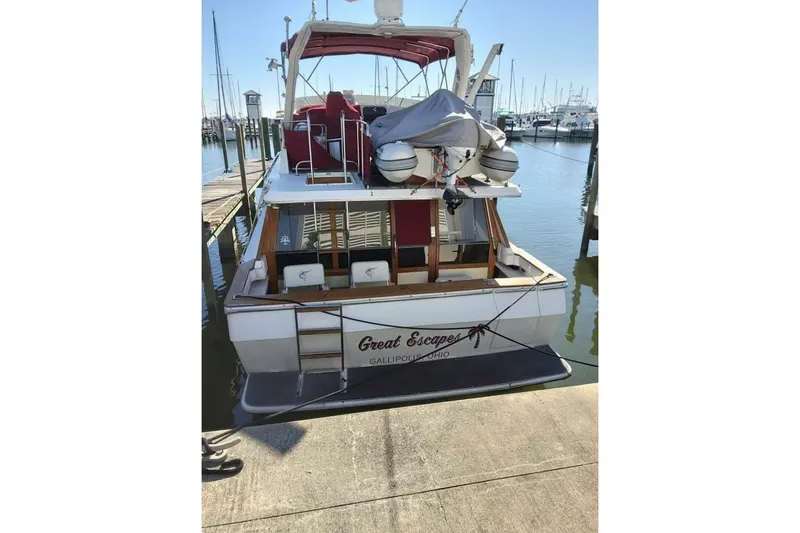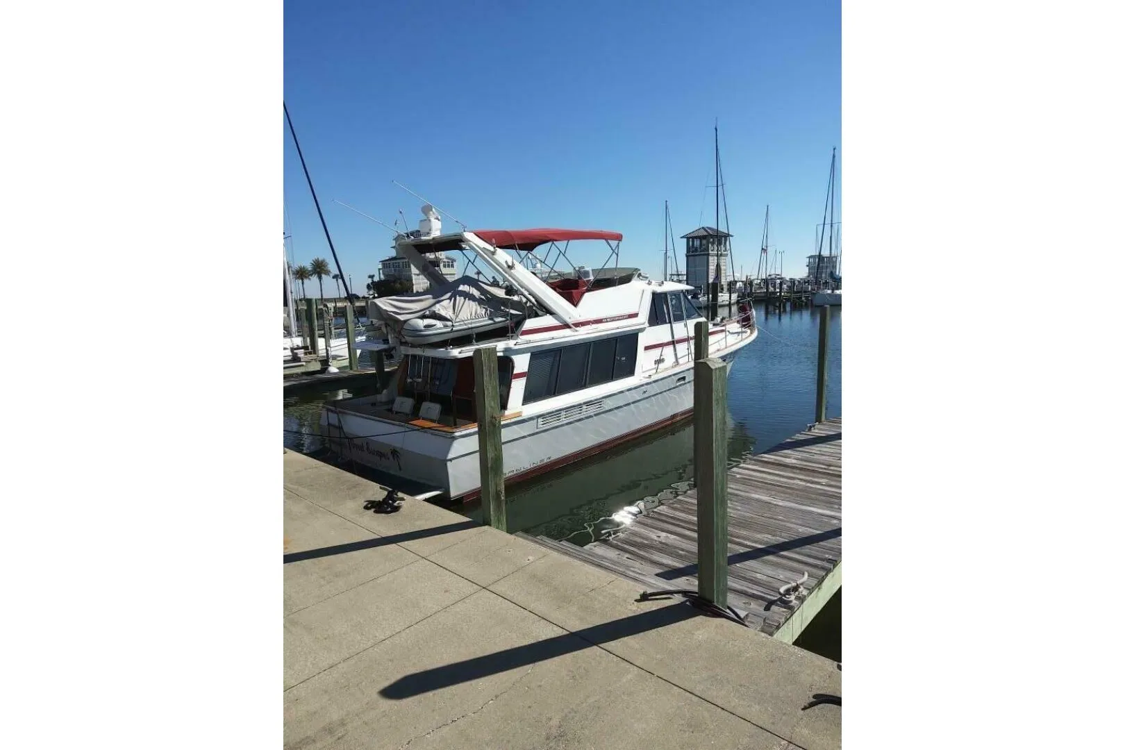 Step inside and you’ll immediately appreciate the space. This 3-stateroom, 2-full-bath layout offers true residential comfort, including a spacious master with tub, generous guest accommodations, and a versatile third cabin perfect for additional guests or an office setup. The salon and galley provide an open, inviting feel with warm teak throughout and abundant storage. The fully equipped galley includes a trash compactor, ice maker, built-in blender, beverage refrigerator, microwave, 3-burner electric stove with oven, and dual-voltage refrigerator (12v/110v). A washer/dryer onboard adds to the liveaboard convenience. With 160 gallons of water capacity and 444 gallons of fuel capacity, she’s built for extended cruising in comfort.