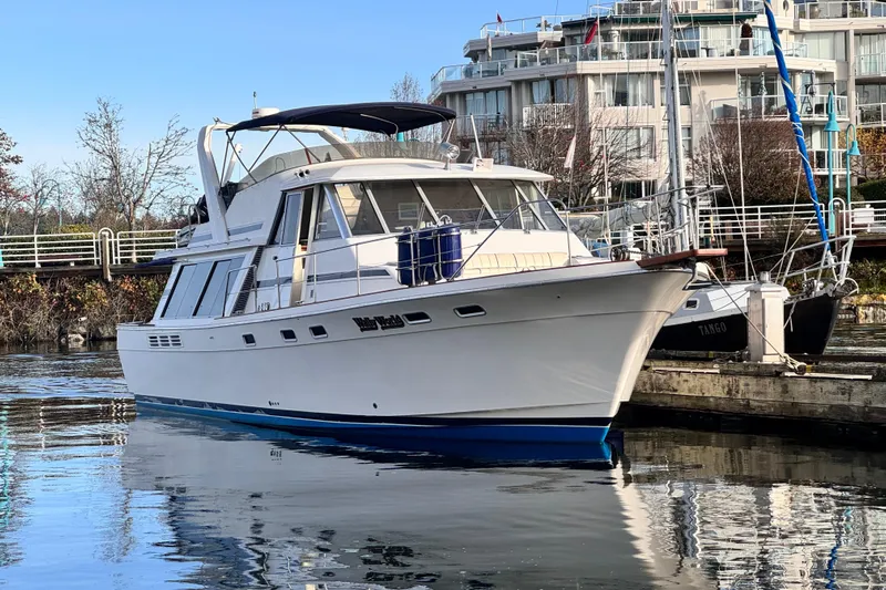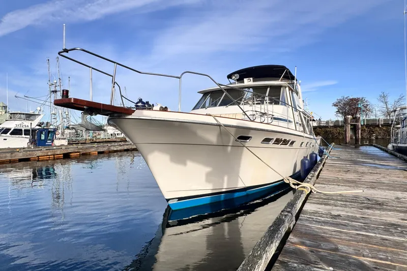 Boatshed kept since 1992. Repowered with 310 Hp Hino diesel engines, with only 158 hours. When the Hinos were installed, new marine Hurth/ZF transmissions, new shafts, propellers, shaft seals and electronic controls were also installed. At the same time, a new 12.6 kW Westerbeke generator was installed and has less than 100 hrs. These upgrades would cost well over $250,000 to do today and provide a level of mechanical soundness unavailable in most 4588s on the coast.
