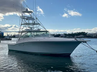 The 45 Cabo is one of the most iconic and finest fishing platforms ever conceived. Constructed on a beamy modified V-Hull with cored hull sides, a deep forefoot and well flared bow. She features beautiful lines and a very spacious air conditioned centerline helm deck with ample L-Shaped seating to port/aft. The fully equipped cockpit has a transom livewell, excellent tackle storage, and two expansive in-deck fish boxes. The engine room is located beneath the helm deck with access through the cockpit. This 45 Cabo has the optional two stateroom layout that first came available with this year model with the master forward and a double bunk guest room to port. The head and shower are across from the guest stateroom and to starboard.