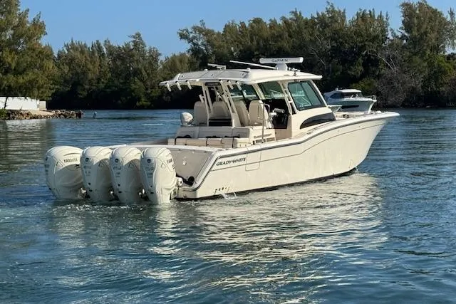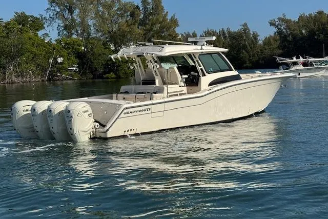 2024 Grady-White Canyon 456. Powered by Quad Yamaha 450, the performance of this boat leaves nothing to be desired. The Canyon 456 has very few optional features because most everything you could want is standard including Diesel generator (72 hours), Cabin & Helm A/C, Seakeeper Gyrostabilizer, CZone digital switching, Zipwake trim system, Electric Grill, Refrigerated fishbox, and much more.