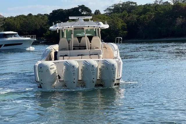 Dealer installed options include: Dual Garmin 9219 19 inch MFD's, Garmin 215 VHF w/8ft fiberglass antenna & Taco electric antenna mount, GXM54 Sirius XM Audio/Weather module, Airmar B164 1kw thru hull transducer, GSD 24 sounder module, GMR 254 Fantom 4ft open array radar, Yamaha/Garmin gateway, and Black Interlux Micron CSC bottom paint w/barrier coat.
