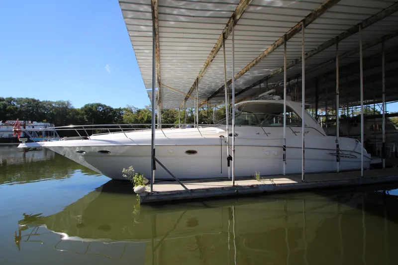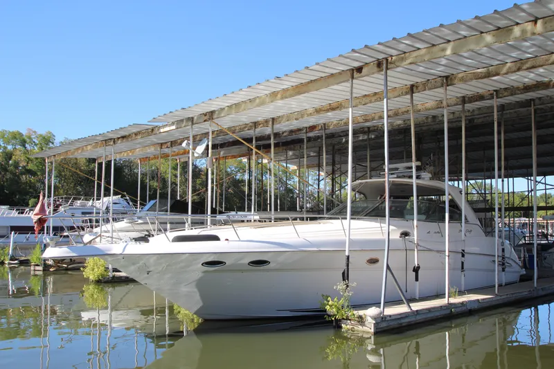 PowerBoat Guide had this to say; One of the largest domestic express yachts available when she was introduced in 1999, the Sea Ray 460 Sundancer is an impressive blend of American sport boat styling, luxury-class accommodations, and state-of-the-art construction. While the styling was perhaps more conservative than most European express yachts of her era, a wide beam and an expansive two-stateroom, two-head floorplan provide the 460 with cabin dimensions that European imports—with their relatively narrow beams—could only envy. Sea Ray interiors have always been among the best in the business, and the accommodations of the 460 are impressive in every respect. The mid-stateroom, complete with an enclosed head and standard washer/dryer, offers complete privacy behind sliding pocket doors. (Note that the settees in both the salon and mid-stateroom convert to double berth at the touch of a button.) In the cockpit, the facing aft settees convert electrically into a huge sun pad. A gas-assist hatch provides easy access to the engine room. An extended swim platform was standard. Twin 430hp V-drive Cummins diesels cruise the 460 Sundancer in the low 20s (27–28 knots top).